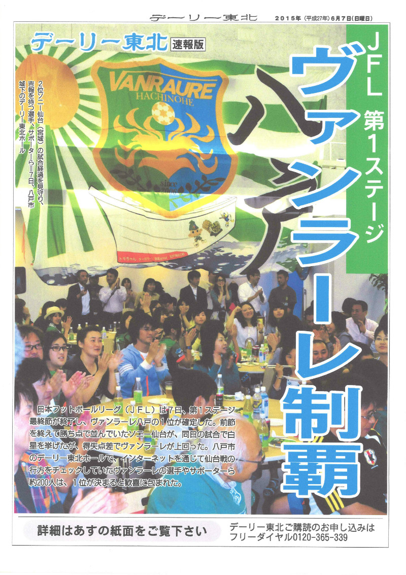 日頃より、ヴァンラーレ八戸へ厚いご声援をいただき、誠にありがとうございます。