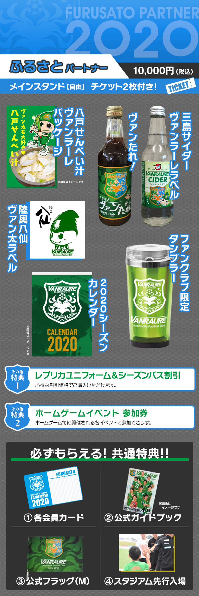 ヴァンラーレ八戸公式ファンクラブ2020のふるさとパートナー特典一覧です。