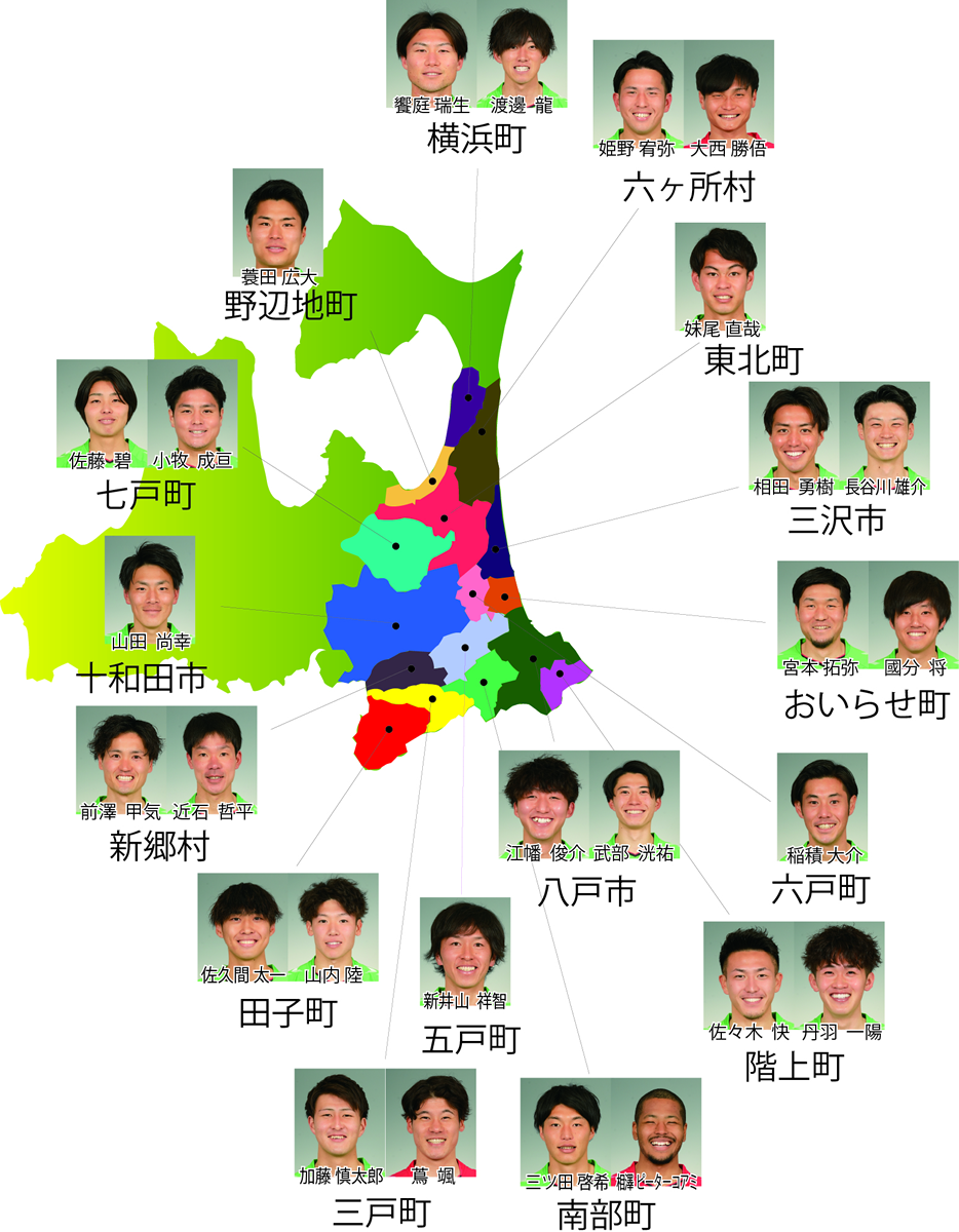 ヴァンラーレ八戸所属選手が、ホームタウン16市町村の応援大使として、