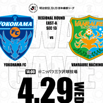 4月29日(水・祝)に開催される明治安田J2・J3百年構想リーグ 地域リーグラウンド EAST-Aグループ 第13節 横浜FC戦について、下記の通りご案内いたします。 試合情報 2026年4月29日(水・祝) 明治安田J2・J3百年構想リーグ 地域リ……