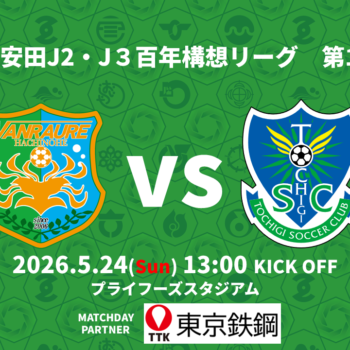 5月24日(日)に行われる明治安田J2・J3百年構想リーグ第18節栃木SC戦について、下記の通りご案内いたします。 [toc] 試合情報 2026年5月24日(日) 明治安田J2・J3百年構想リーグ 第18節 ヴァンラーレ八戸 vs……